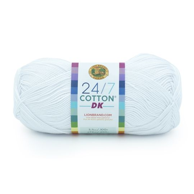 24/7 Cotton DK from Lion Brand Yarn is an easy-care, 100% cotton yarn with a lovely sheen and drape - making it perfect for year round garments, shawls, home decor and baby items. Sophisticated neutral colours and cheerful hues that will last through multiple wash cycles. 100% Mercerised Cotton - Machine wash and dry - Crochet Hook size 4.00mm - Knitting Needles 4.00mm (US 6) - Tension 20 stitches on 28 rows to 10cm (4 inches)