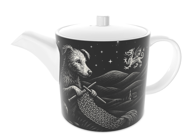 Elevate your teatime ritual with this exceptional fine bone-china teapot from our “Draig Knitting at Night” collection. Designed exclusively by The Yarnhouse and expertly made and printed in Wales, this piece combines luxurious craftsmanship with whimsical storytelling.