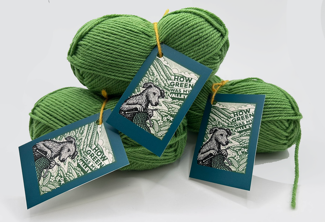 How Green Was My Valley the yarn, is a warm, 4 thread spun wool made to order for us using 100% wool from across the UK. It is approximately DK weight, and made in small batches. We find this an excellent hand knitting wool, great for crochet and also useful for felting uses.