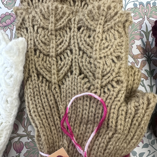 Hand knitted here at the Yarnhouse these traditional patterns are warm, decorative and useful leaving your fingers free to work, type or text.