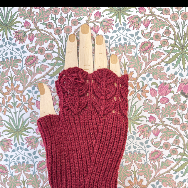 These feature both decorative lace work over the palm and back of hand and decorative ribbing work all over.