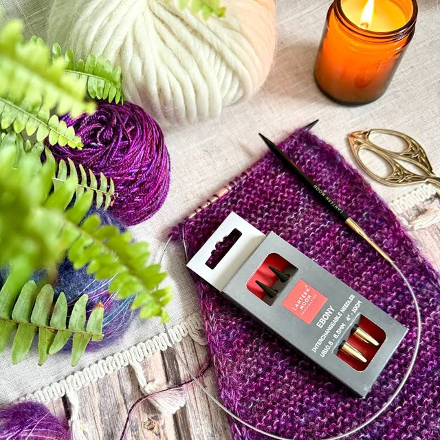 Lantern Moon’s interchangeable circular knitting needles are made of Ebony wood, one of the world’s most valuable materials. The liquid silk finish of these lightweight interchangeable circular needles and the 24K finish on the brass connector, guarantees snag-free knitting.