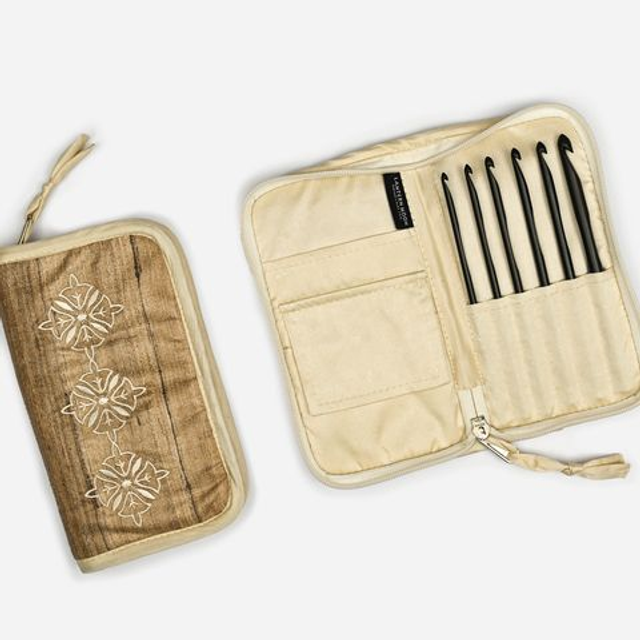 The Radiance set of single-ended crochet hooks is beautiful and practical, featuring six popular US sizes G – L (4 – 8 mm) and housed in an elegant Khadi silk case. Multiple pockets allow you to keep your crochet accessories, such as stitch markers or scissors, organized and within reach as you work on your latest project. With the Radiance set under your belt, you’ll be able to bring your crochet projects to life like never before.