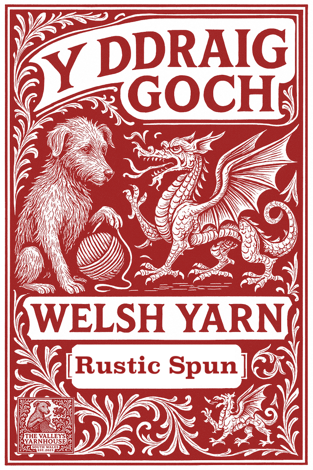 Rustic spun yarn. "Soft ply" so we recommend you twist this slightly while using. Perfect for felting. We based this on older Celtic and Nordic wools, inspired by historical knitwear and in part on Icelandic style yarn. We wanted something welsh, distinct and acknowledging the heritage of the wool makers in Wales of the past. Not quite DK weight, Not Quite Arran, and can be slightly inconsistent in places adding to the charm of your work.