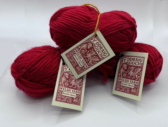 Soft, luxurious and deep red. We work with farms across Wales to purchase -over market rate- sheep's fleeces then work with wool processors, carders and spinners across Wales and England to produce this beautiful yarn.